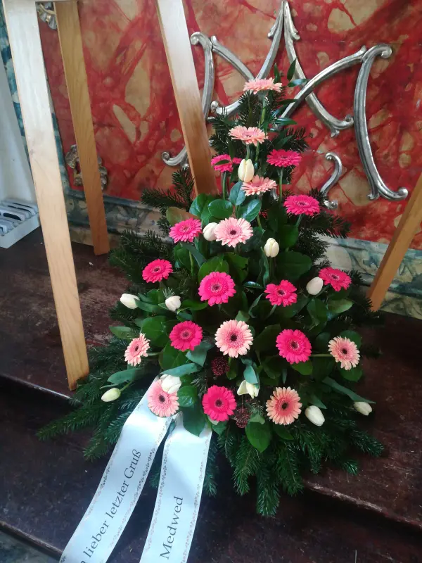 Der Verlust eines geliebten Menschen ist unermesslich schwer. Unsere Erfahrung in diesem sensiblen Bereich ermöglicht es uns, einfühlsame Arrangements zu schaffen, die Ihre Trauer auf stilvolle Weise ausdrücken. Wir unterstützen Sie in diesem schwierigen Moment und sorgen für eine würdevolle Blumendekoration.